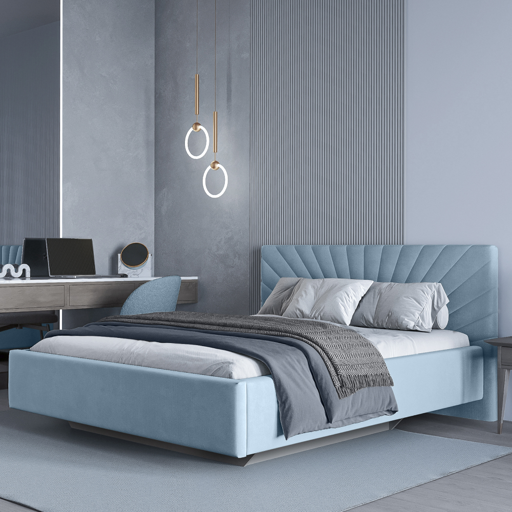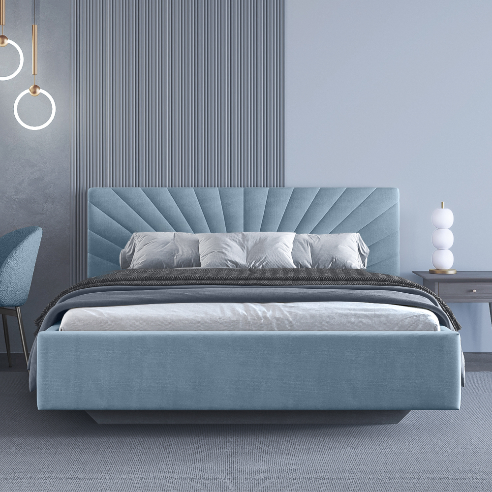 • Кровать с изголовьем в виде лучей - это интересный и оригинальный элемент дизайна интерьера.