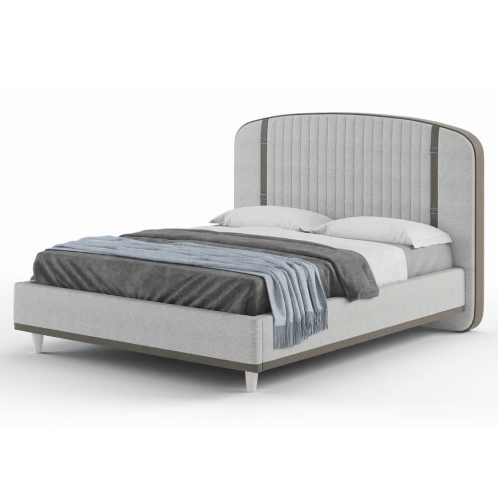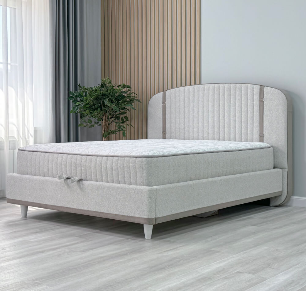 Эта интерьерная кровать привлекает внимание своим изысканным дизайном - закругленным изголовьем и элегантными вставками из ткани. Вертикальные ремни добавляют кровати неповторимый шарм, делая ее настоящим украшением любой спальни. Благодаря этим особенностям данная кровать станет ярким акцентом в интерьере, выделяясь среди традиционных моделей.