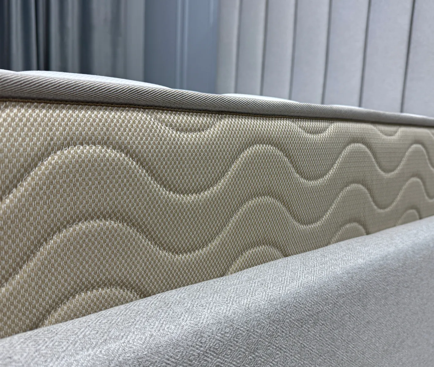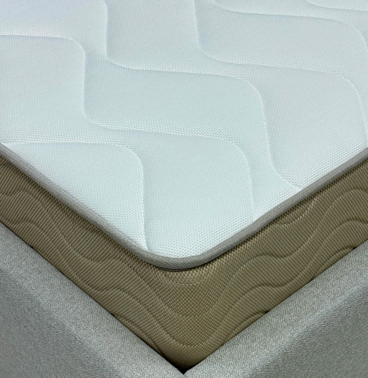 Короб из ППУ усиливает жесткость конструкции пружинных моделей по краям матраса, предотвращая их проседание при регулярной нагрузке. Это особенно важно при локальных нагрузках на борт матраса при посадке и подъеме с матраса. В наших моделях используются два вида пен - стандартной марки у изголовья и повышенной плотности в боковых зонах.