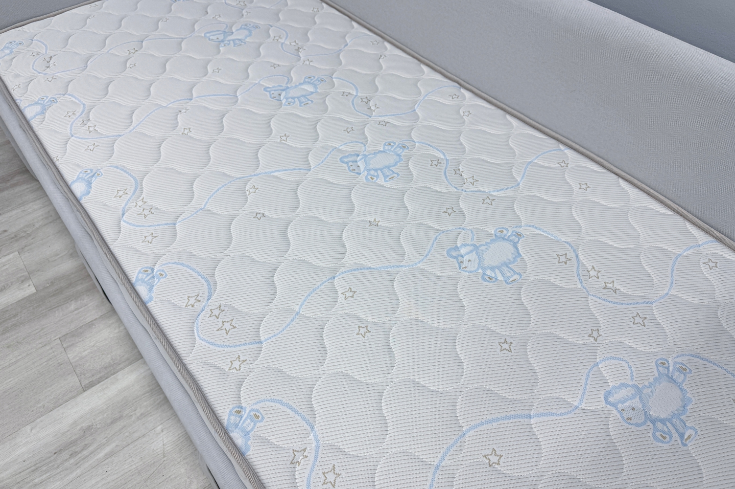 Трикотаж «Ovis» -  это мягкий, дышащий и приятный на ощупь материал, созданный специально для обеспечения максимального комфорта и безопасности ребёнка во время сна. Благодаря своей эластичной структуре ткань легко подстраивается под форму матраса, не образуя складок, а высокая износостойкость гарантирует долгий срок службы. Материал обладает хорошей воздухопроницаемостью, что помогает поддерживать оптимальный микроклимат в спальном месте. Поверхность трикотажа «Ovis» гипоаллергенна и не вызывает раздражений, что особенно важно для чувствительной детской кожи.