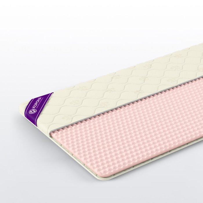 Форма ячеек спроектирована так, что наполнитель обладает массажным эффектом, позволяет лучше циркулировать воздуху, улучшает теплообмен. Благодаря плотной структуре данный топпер сохраняет свои характеристики весь период эксплуатации без остаточной деформации и проседания.